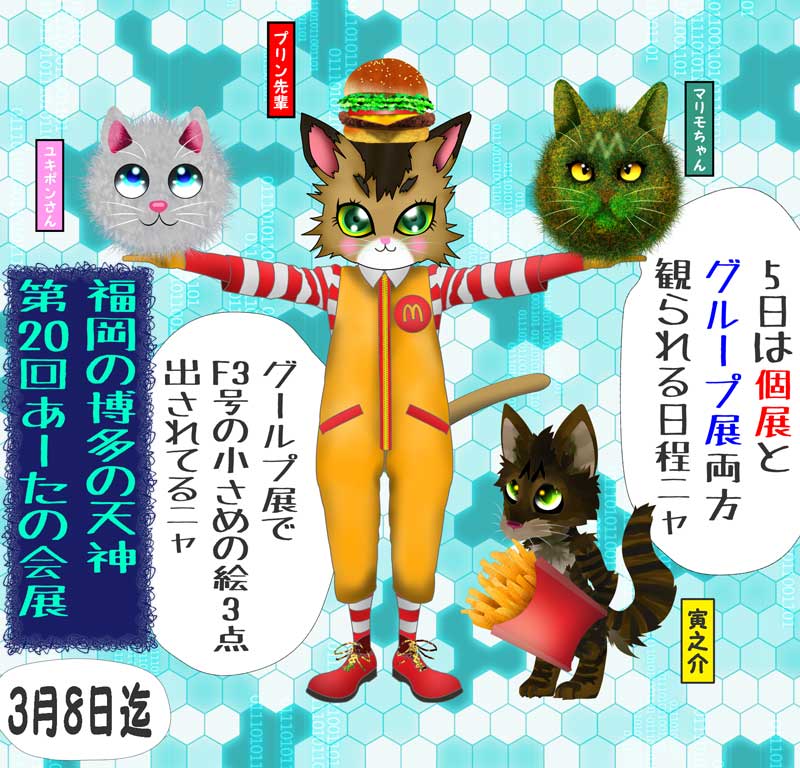 福岡県の博多いちばんの繁華街の天神では「第20回あーたの会展」というグループ展が、3月8日までやっているニャン。