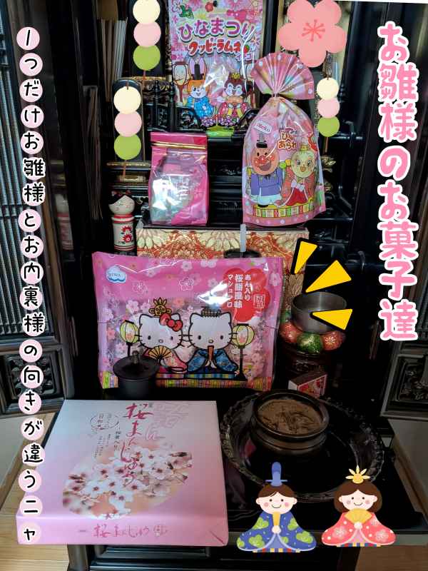 ●仏壇にお雛様のお菓子を飾るニャ
