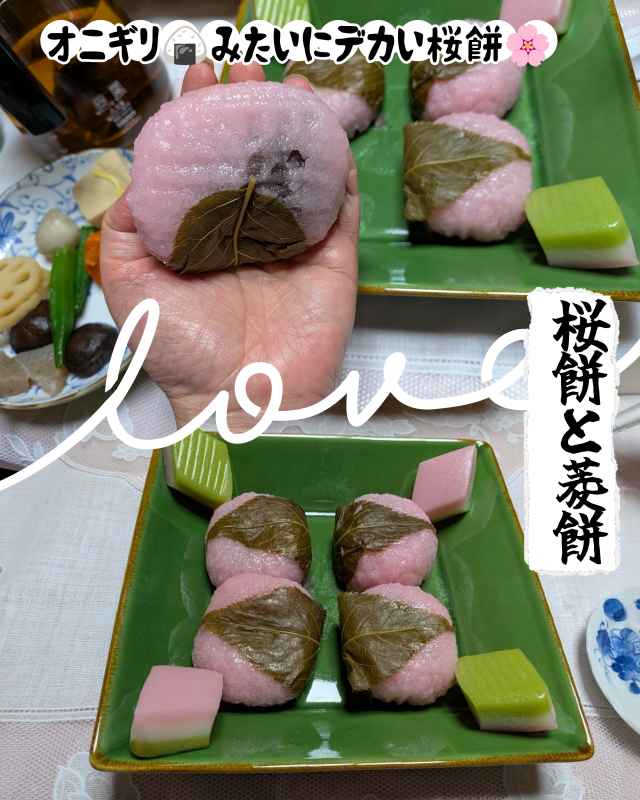 おにぎり🍙みたいに大きな桜餅でしたにゃ。