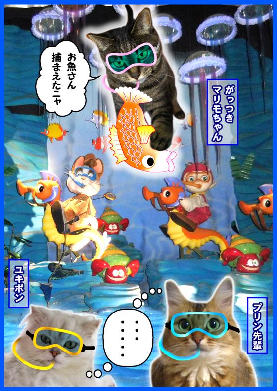 ↑3ニャンのスキューバダイビング姿 がっついたマリモちゃんは